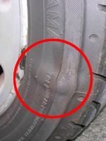 Wangen: Met de wang van een band wordt de zijkant bedoeld. Deze mag niet te veel uitgedroogd (droogtescheurtjes) of beschadigd zijn en geen uitstulpingen vertonen. Een uitstulping betekent dat de band van binnenuit beschadigd is. Bij een uitstulping is het niet de vraag of, maar wanneer de band gaat klappen.Uitstulping
